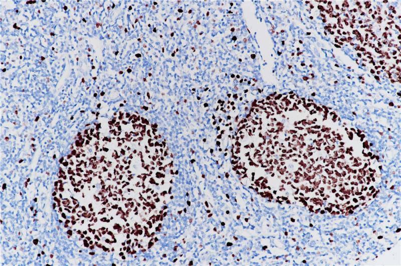 TRPS1是一种转录因子,最初发现在毛鼻指骨综合征(一种颅面和骨骼畸形综合征)中发生突变。TRPS1识别GATA序列,抑制其他GATA因子的激活潜能。TRPS1在乳腺癌、宫颈癌、食管上皮中高表达。在病理诊断中,TRPS1是一种敏感、特异的乳腺癌标志物。